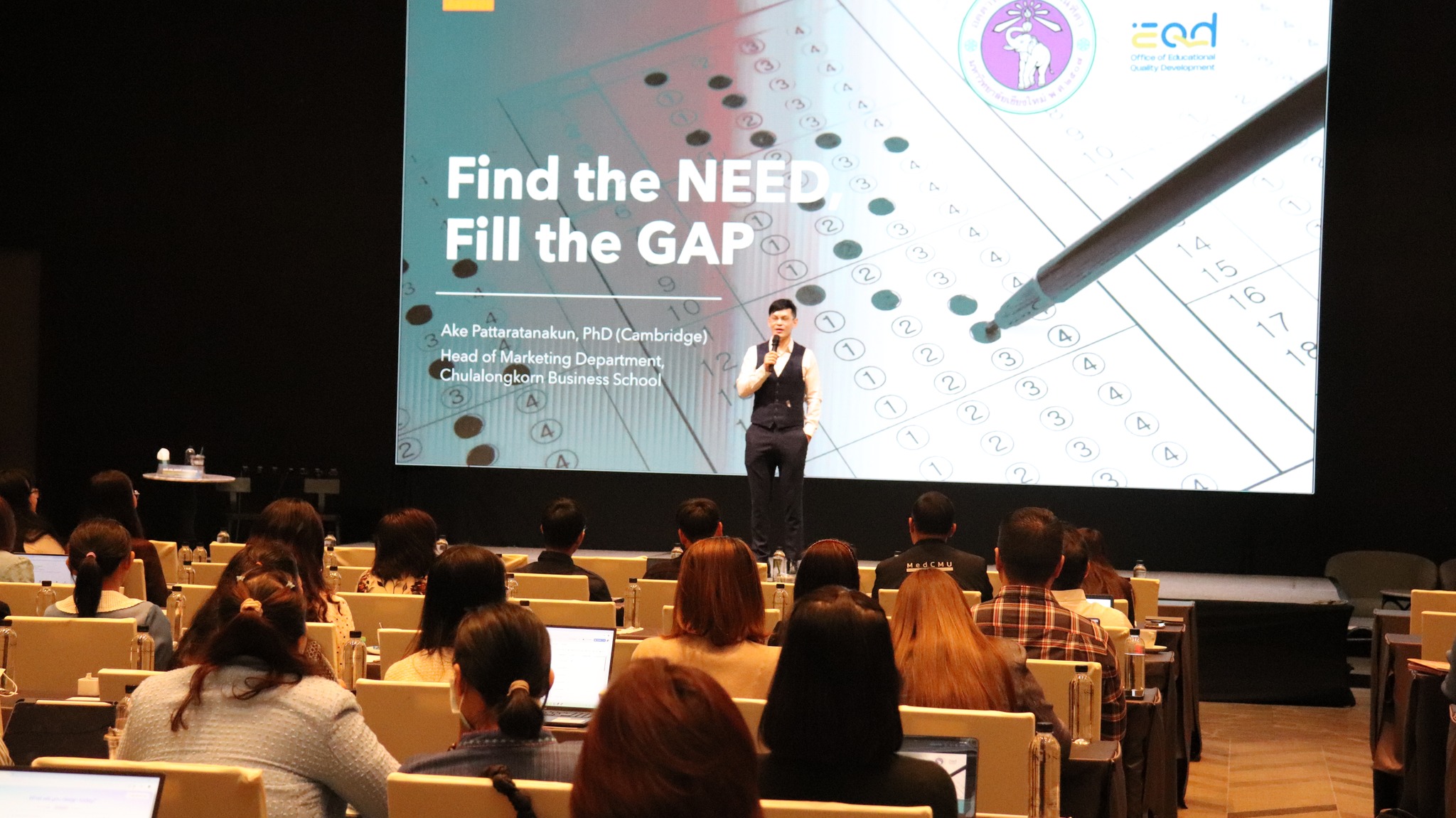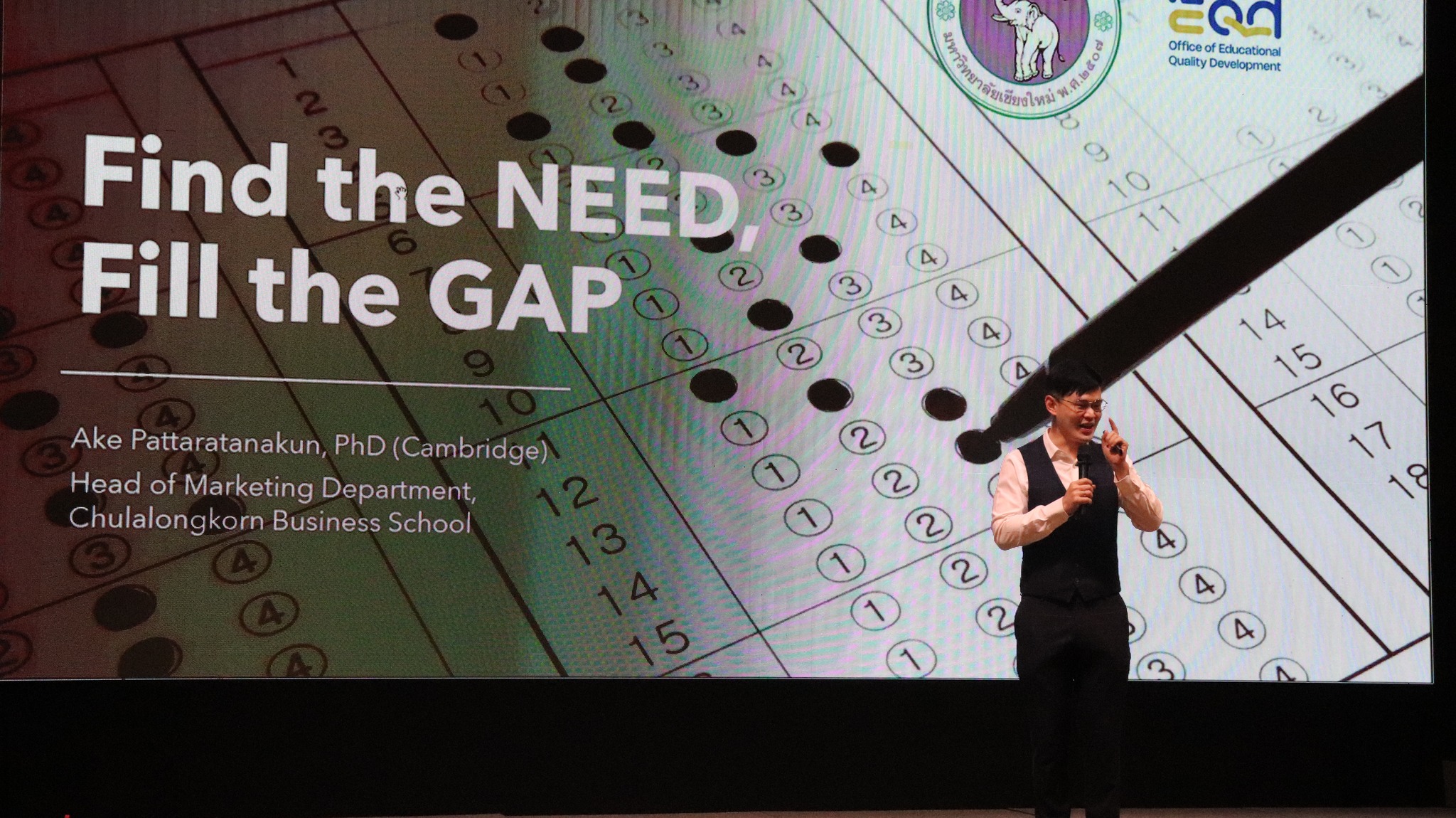 🚩สำนักพัฒนาคุณภาพการศึกษา มหาวิทยาลัยเชียงใหม่ เดินหน้าเปิดเวทีแลกเปลี่ยนความรู้ Market Positioning: Find the Need, Fill the Gap จุดประกายความคิดใหม่ในการออกแบบหลักสูตรอย่างมีกลยุทธ์ ตอบโจทย์ตลาดการศึกษาในโลกยุคพลิกผัน โดยได้รับเกียรติจาก ผศ.ดร.เอกก์ ภทรธนกุล ที่ปรึกษาอธิการบดีด้านแบรนด์และหัวหน้าภาควิชาการตลาด คณะพาณิชยศาสตร์และการบัญชี จุฬาลงกรณ์มหาวิทยาลัย เป็นวิทยากรถ่ายทอดองค์ความรู้เชิงลึกให้แก่อาจารย์ผู้รับผิดชอบหลักสูตร อาจารย์ประจำหลักสูตร และบุคลากรสายสนับสนุน ของ มช. รวมกว่า 200 คน ณ ห้องนิมมาน 3 คอนเวนชัน เซ็นเตอร์ โรงแรมยู นิมมาน เชียงใหม่