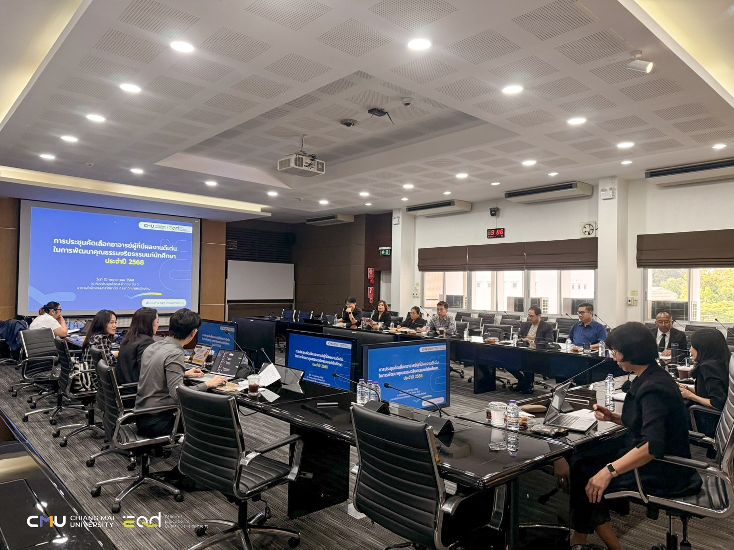 สำนักพัฒนาคุณภาพการศึกษา มหาวิทยาลัยเชียงใหม่ โดยรศ.ภญ.อุษณีย์ คำประกอบ รองอธิการบดีมหาวิทยาลัยเชียงใหม่ ประธานการประชุม และผู้ช่วยศาสตราจารย์ ดร.วีณัน บัณฑิตย์ ผู้ช่วยอธิการบดีมหาวิทยาลัยเชียงใหม่ และรักษาการแทนผู้อำนวยการสำนักพัฒนาคุณภาพการศึกษา พร้อมด้วยผู้ช่วยศาสตราจารย์ ดร.พร้อมพงศ์ สุกัณศีล และทีมงานฝ่ายส่งเสริมมาตรฐานและประกันคุณภาพการศึกษา เป็นฐานเลขานุการคณะกรรมการสัมภาษณ์ผู้สมควรได้รับการยกย่องให้เป็นอาจารย์ดีเด่น และอาจารย์ผู้ที่มีผลงานดีเด่นในการพัฒนาคุณธรรม จริยธรรมแก่นักศึกษา ประจำปี 2568 ซึ่งการประชุมครั้งนี้ เป็นมากกว่าการคัดเลือกแต่เป็นการค้นหา "แรงบันดาลใจ" และ "แบบอย่างที่ดี"ผู้เป็นพลังขับเคลื่อนปัญญา คุณธรรม และความดีงาม ให้แก่นักศึกษา มหาวิทยาลัย และสังคม💜