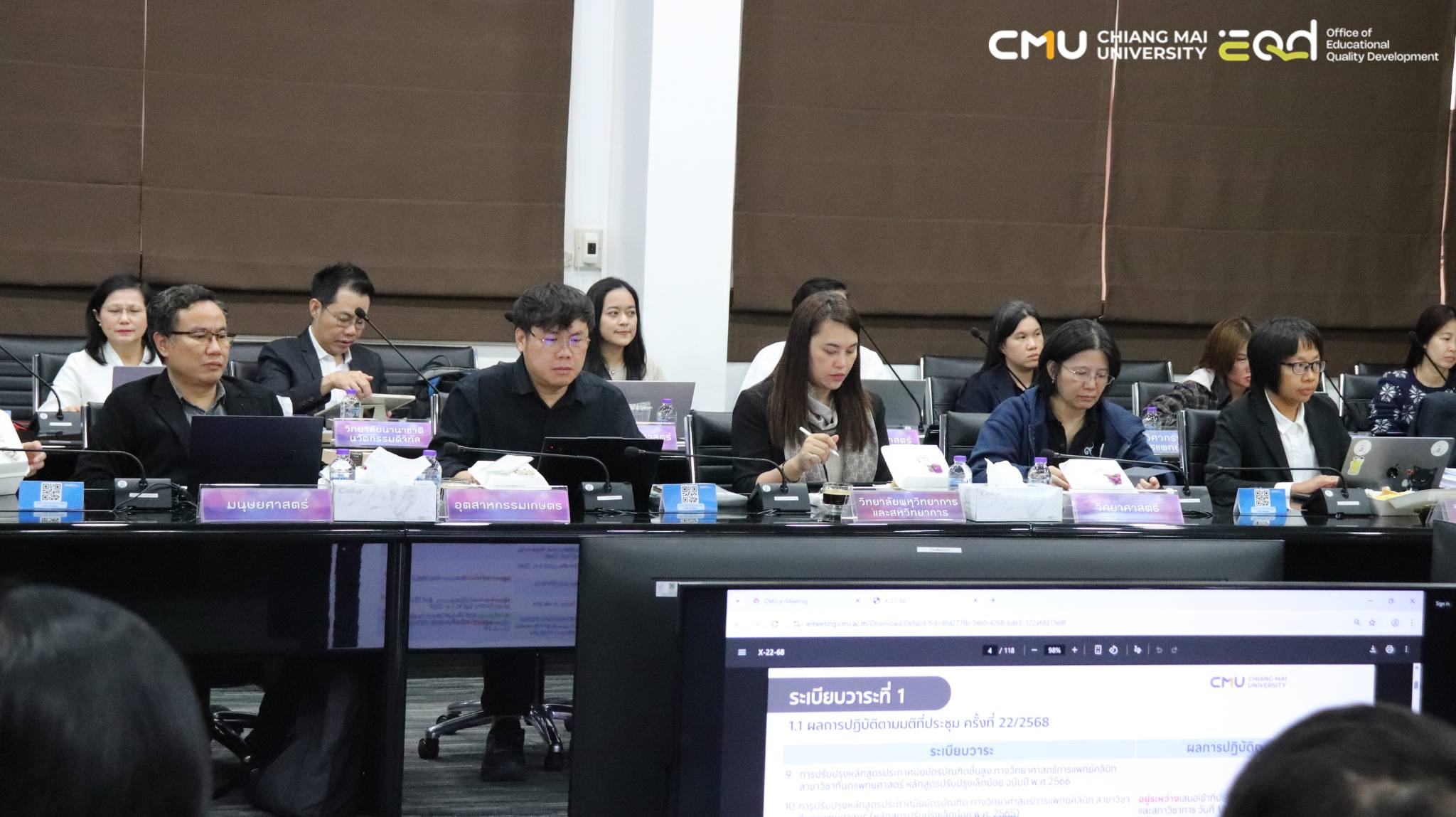 วันที่ 9 มกราคม 2569 เวลา 13.30น. ณ ห้องประชุมบัวเรศ คำทอง ชั้น 5 อาคารสำนักงานมหาวิทยาลัย 2 รองศาสตราจารย์ เภสัชกรหญิงอุษณีย์ คำประกอบ ประธานที่ประชุมคณะกรรมการบริหารและพัฒนาวิชาการ มหาวิทยาลัยเชียงใหม่ พร้อมด้วย ผู้ช่วยศาสตราจารย์ ดร.วีณัน บัณฑิตย์ รักษาการแทนผู้อำนวยการสำนักพัฒนาคุณภาพการศึกษา ผู้ช่วยศาสตราจารย์ ดร.ณัฐนันท์ พรหมสุข รักษาการแทนรองผู้อำนวยการสำนักพัฒนาคุณภาพการศึกษา ผู้บริหารส่วนงานวิชาการ และทีมงานสำนักพัฒนาคุณภาพการศึกษา เข้าร่วมประชุมกรรมการบริหารและพัฒนาวิชาการ ครั้งที่ 1/2569
